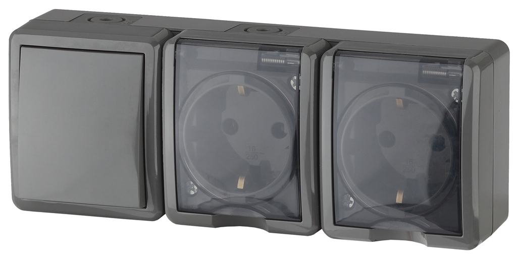 Блок две розетки+выключатель ЭРА IP54 16АХ(10AX)-250В ОУ серый /5 11-7403-03