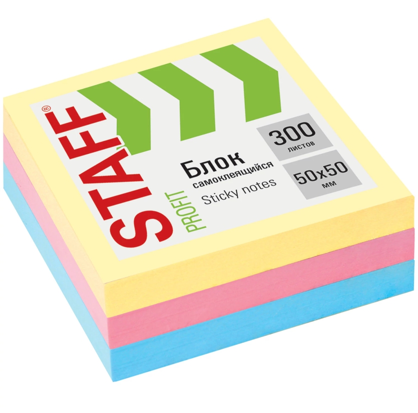 Блок самоклеящийся (стикеры) STAFF 50х50мм, 300 листов, 3 цвета, 127145