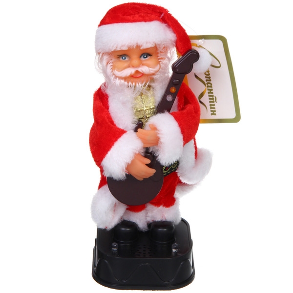 Дед Мороз музыкальный 20 см в красной шубе с музыкальным инструментом (работает от 2*АА - в комплект