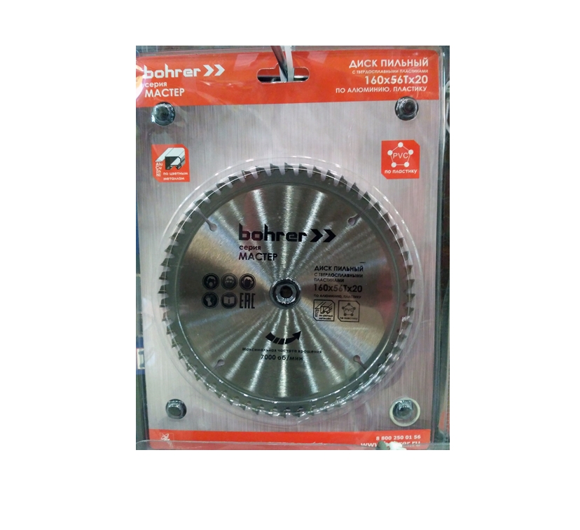 Диск пильный твердосплавный по ламинату/пластику BOHRER Мастер 160x20/16мм 48Т зубьев 38416048