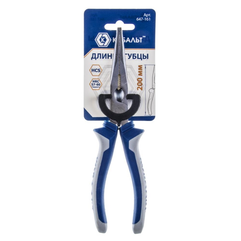 Длинногубцы КОБАЛЬТ 200 мм, с кусачками для проволоки, 2-х компонентные рукоятки, HCS, подвес