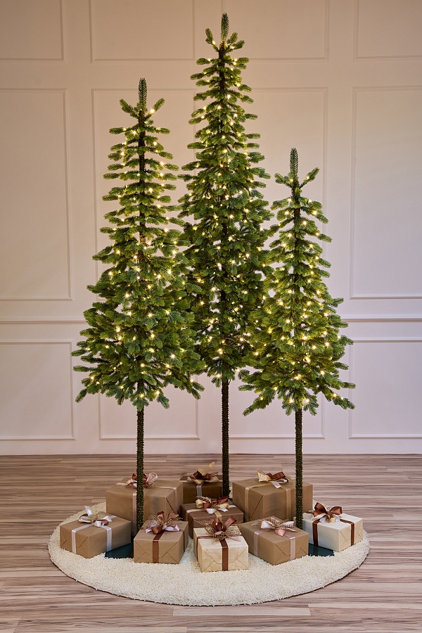 Ель искусственная литая с лампочками ˮКоролева Тянь Шаняˮ: готовая к празднику композиция высотой 1,8 метра. Отличается литым дизайном, создающим эффект настоящей хвои, и уже встроенными лампочками. Не требует дополнительного украшения гирляндами.