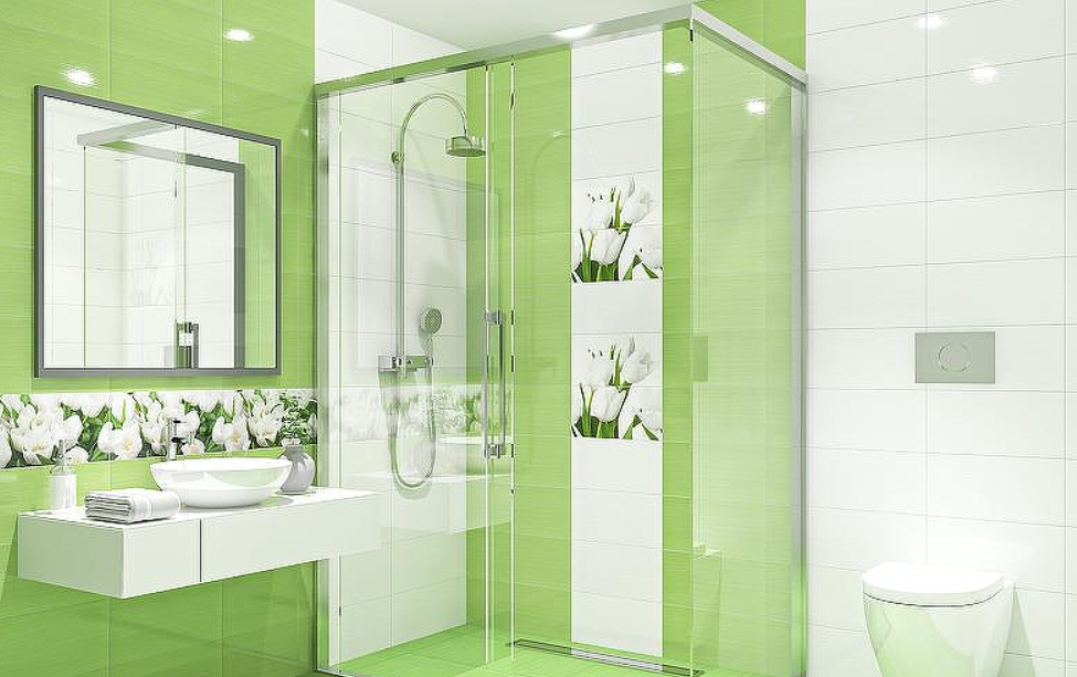 Декоры и панно из двух элементов будут актуальны в оформлении ванных комнат и кухонных фартуков. Весенняя тематика всегда пробуждает самые лучшие чувства и ассоциации. Поэтому вы не устанете от такого насыщенного цветом интерьера. Цветочные мотивы разбавят лаконичность монохромных стен. В поддержку декорам используйте бордюры, которые помимо эстетической нагрузки несут функции разграничения функциональных зон и коррекции геометрии помещения.