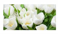 Базовая настенная и напольная плитка Элара от Azori монохромна. Она имеет ровную поверхность с еле различимым линейным рисунком. Создается впечатление, что глазурь на нее наносили широкой кистью. Изюминкой коллекции стали декоры, выполненные цифровой печатью. На них дизайнеры разместили фотографически точные изображения белых тюльпанов.