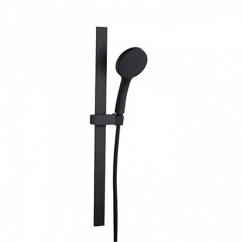 Душевой гарнитур. Стойка из нержавеющей стали, черная, высота 704 мм. Ручная лейка, черная, 1 режим, диаметр 117 мм. Шланг для душа 1,5 метра, черный, материал ПВХ, комплектуется фильтр-вставкой 300 мкм. В комплекте: крепеж с заглушками.