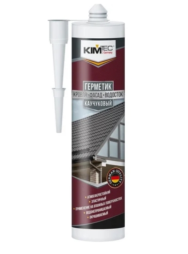 Каучуковый герметик KIM TEC кровля, фасад, водосток, черный, 310 мл предназначен для герметизации и реконструкции швов и зазоров различных стройматериалов (черепица, металл, бетон, древесина, пластик, кирпич, стекло).