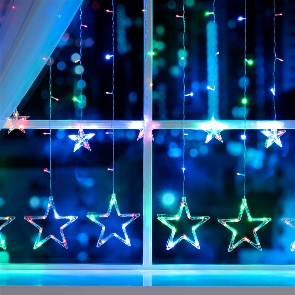 Гирлянда «Бахрома» 2.4 × 0.9 м с насадками «Звёзды», IP20, прозр. нить, 138 LED мульти, 8 режимов, 2