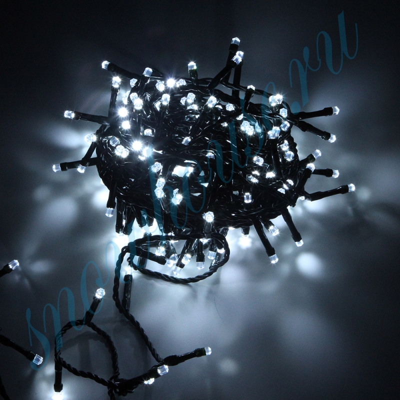 Уличная светодиодная электрогирлянда с белыми светодиодами. Гирлянда имеет необычное свечение благодаря колпачку на светодиоде типа ˮкристаллˮ. Гирлянда соединяемая, имеет возможность подключения дополнительным модулей (до 10 штук). Длина сетевого провода 150 см.