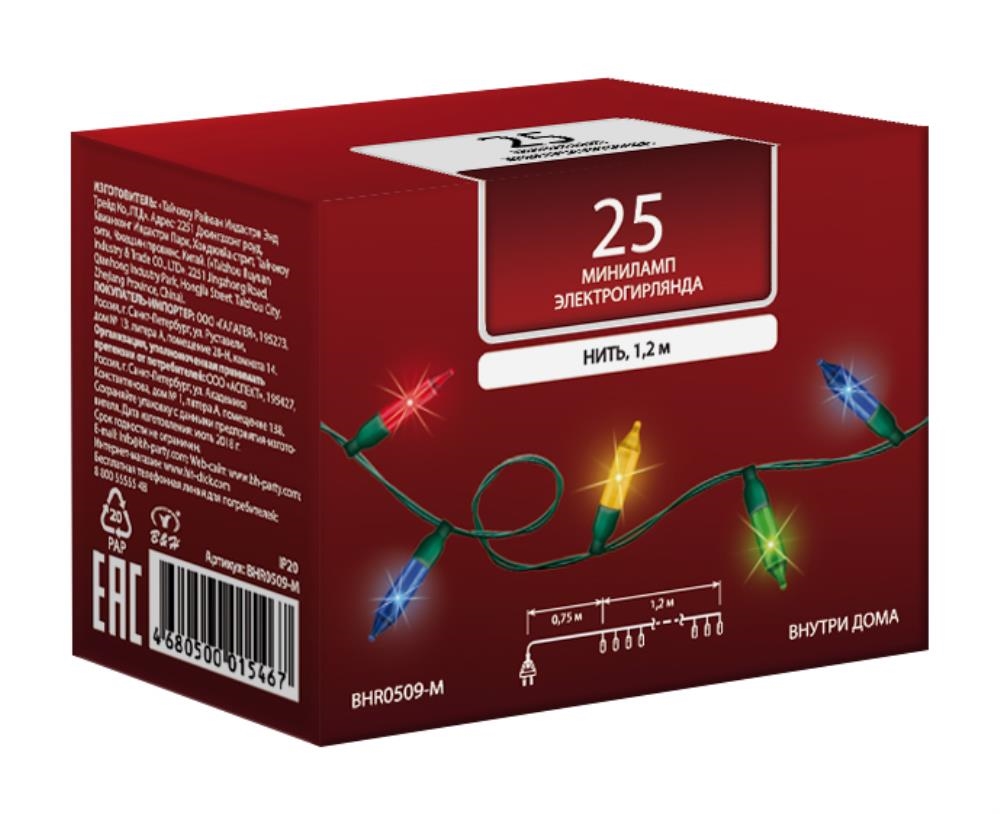 Гирлянда нить 25 миниламп разноцветный 1.2 м АС