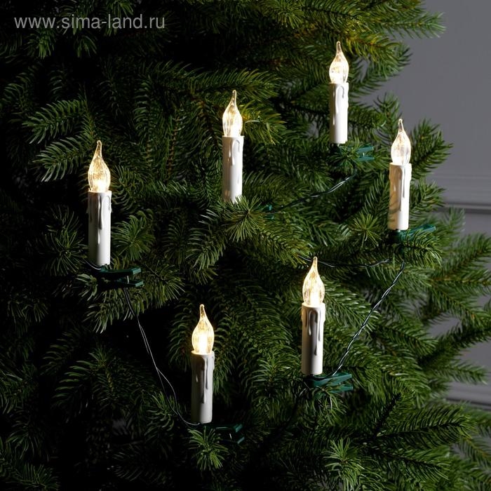 Гирлянда «Нить» 6 м с насадками «Свечи на прищепке», IP20, тёмная нить, 30 LED, свеч.тёплое белое, 2