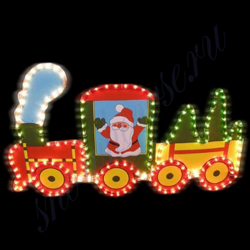 овогодняя фигура из дюралайта на пластиковом каркасе «Рождественский поезд». Используется для украшения фасадов зданий, окон, пространства между улицами.