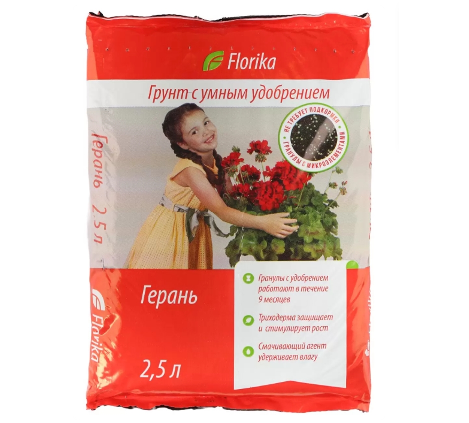 Грунт Флорика ˮГераньˮ 2,5л — идеальное решение для яркого цветения герани: сбалансированный состав, лёгкий уход, результат уже через 2 недели.