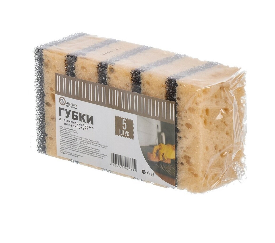 Губка для антипригарных поверхностей, 5 шт, поролон, 2 слоя, Марья Искусница