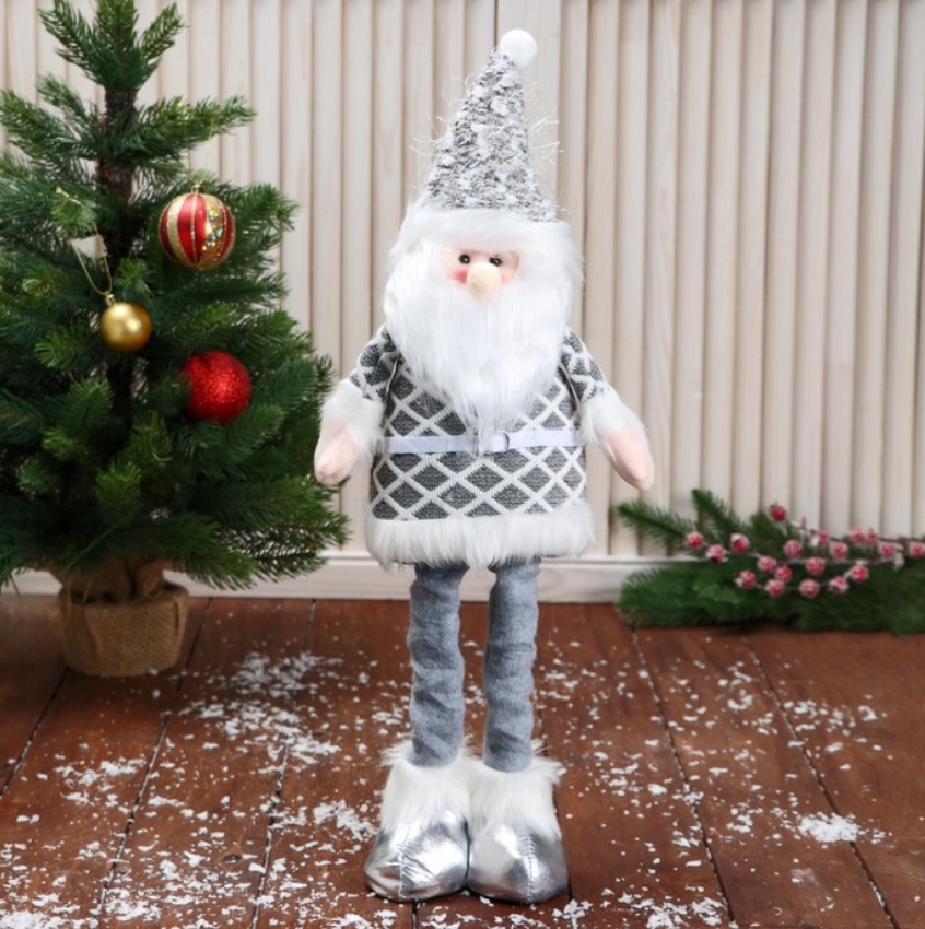 Игрушка мягкая «Дед Мороз в костюме с ремешком, длинные ножки» стоит, бело-серая