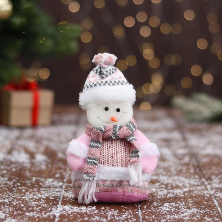 Игрушка мягкая Снеговик в вязаном костюме 9×15 см, розовый добавит уюта и весёлого настроения в зимние дни. Прекрасный вариант для праздничного декора.