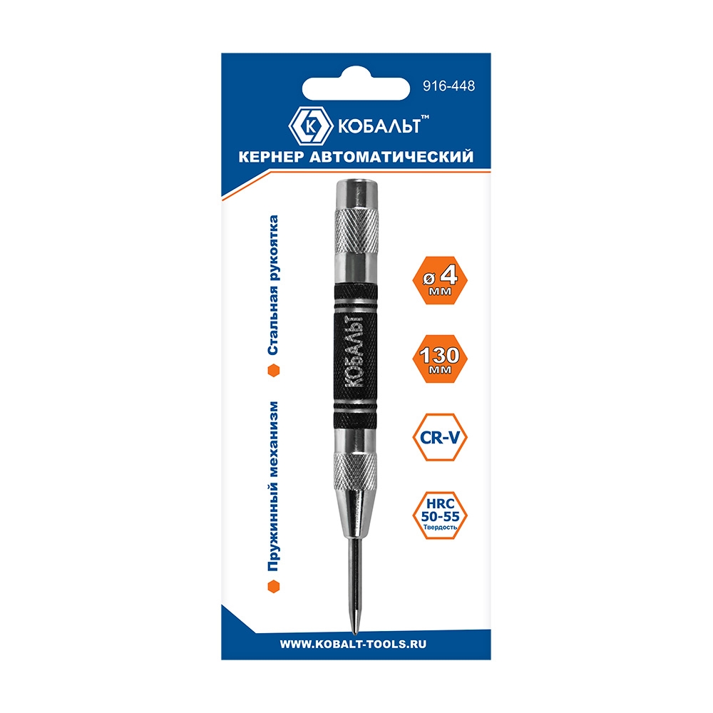 Кернер КОБАЛЬТ автоматический 4 х 130 мм, материал рукоятки сталь, стержень хром-ванадиевый, блистер