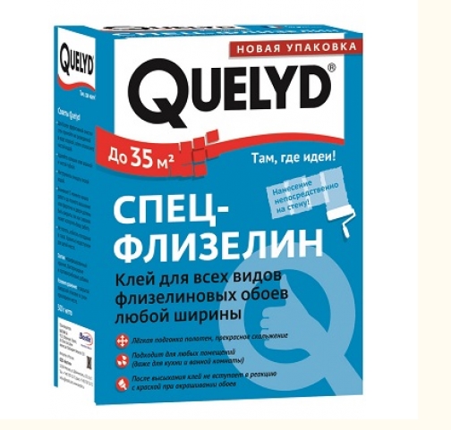Специальный клей для любых обоев на нетканой флизелиновой основе, тяжёлых виниловых обоев на флизелиновой основе, в том числе и для флизелиновых обоев под покраску.