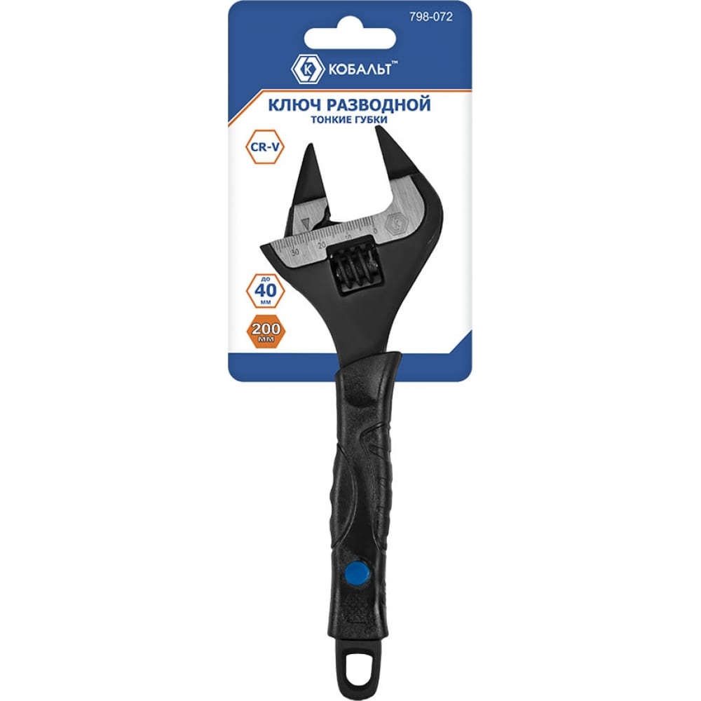Ключ разводной с тонкими губками КОБАЛЬТ 200 мм, ширина захвата 40 мм, двухкомпонентная рукоятка
