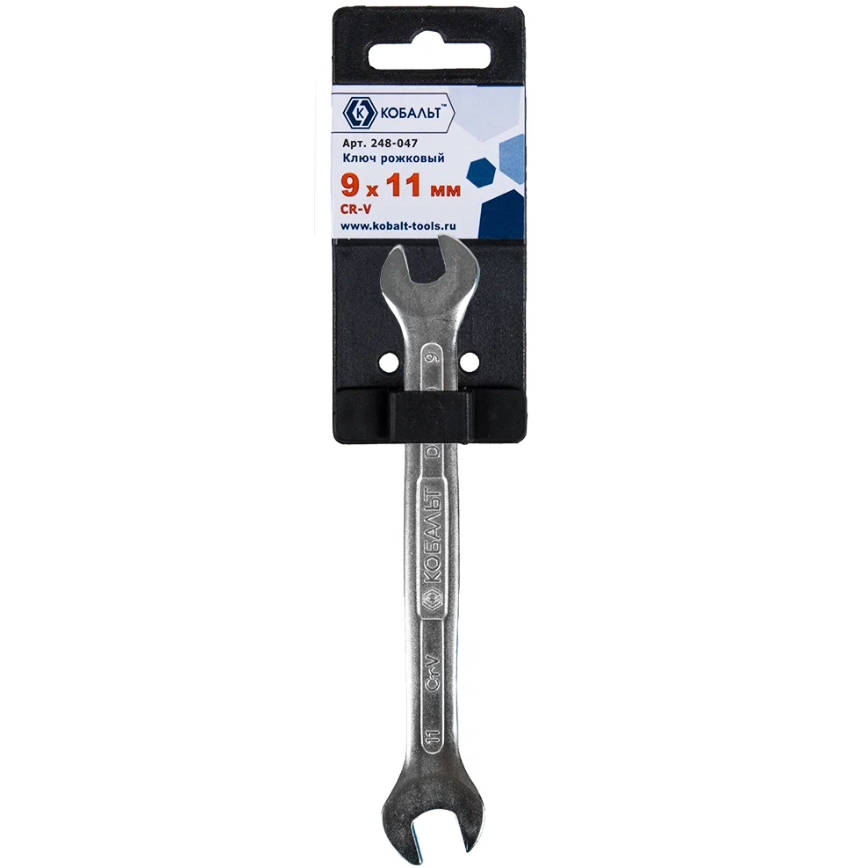 Ключ рожковый КОБАЛЬТ 9 x 11 мм, Cr-V, подвес (248-047)