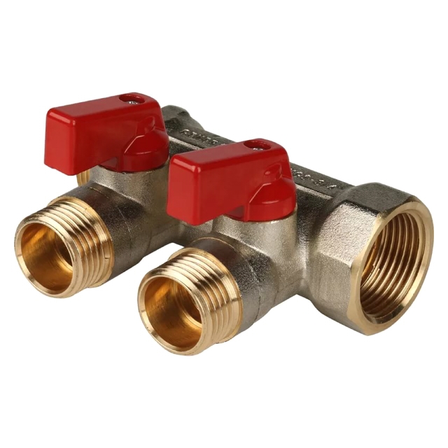 Коллектор с отсекающими кранами 2 вых.х3/4х1/2ˮ с наруж рез.,02424