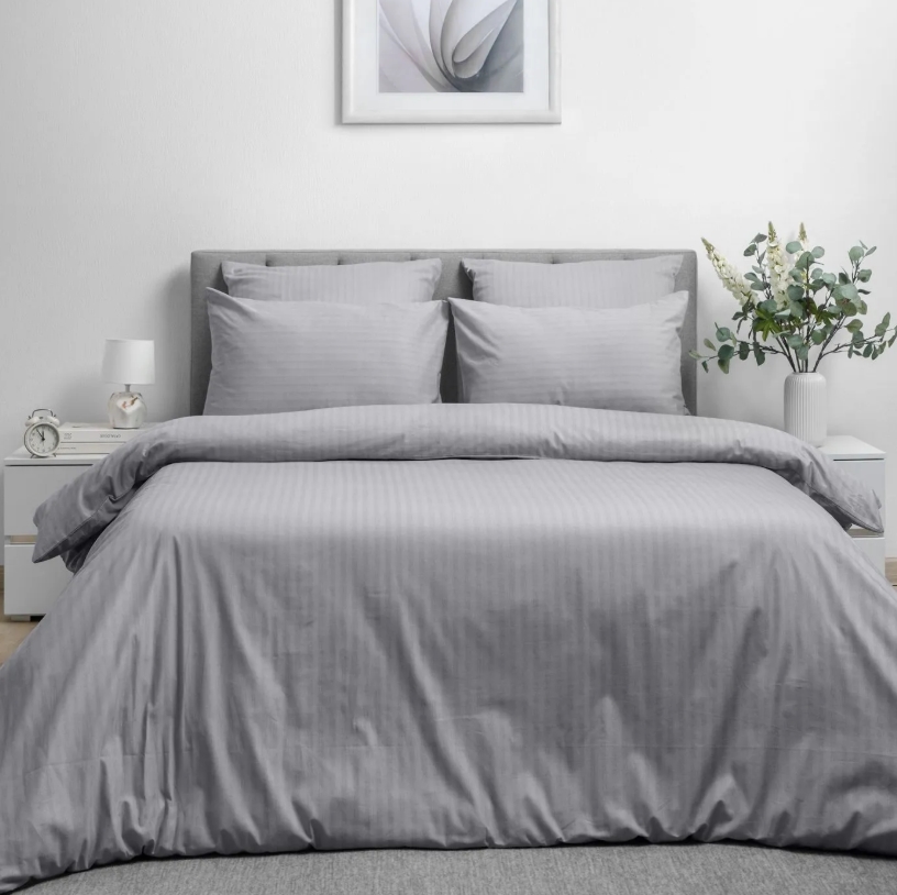 КПБ ˮВолшебная Ночьˮ 2,0СП, наволочки 50×70, страйп-дизайн Gray Cloud – лаконичный комплект в серых оттенках с полосатым узором, мягкий и приятный: отлично подходит для современного интерьера и ежедневного использования. Комплект выполнен из страйп-сатина. Материал обладает лёгким блеском, высокой износостойкостью и почти не мнётся.