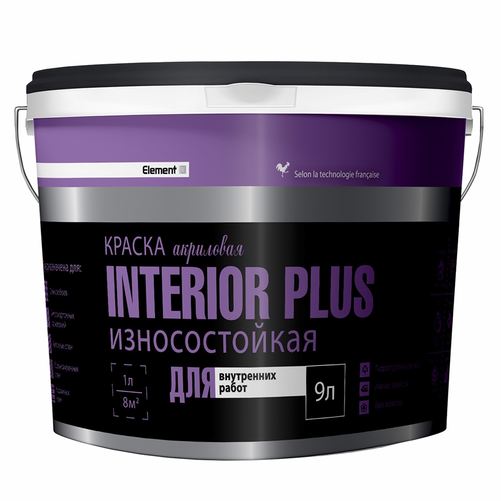 Краска акриловая интерьерная износостойкая INTERIOR PLUS Element SE база А 9 л (14,2 кг) Alpa