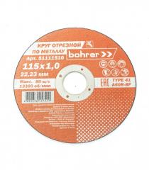 Круг отрезной BOHRER по металлу 115*1,0х22,2 Т41 А60R-BF /400 51111510