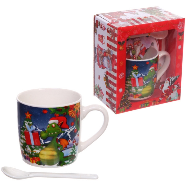 Кружка керамическая 200мл ˮДракончик с подаркомˮ с ложкой в подарочной коробке
