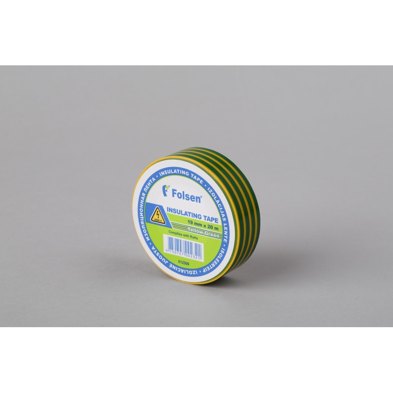 Лента изоляционная 19ммх20м желто-зеленая Folsen 012509