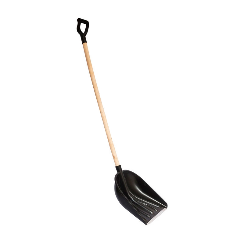 - Классическая надежность: сочетание прочного пластика, металлической кромки и деревянного черенка.