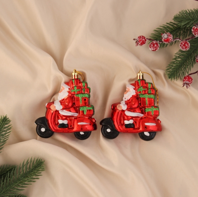 Набор елочных украшений «Дед Мороз на мотоцикле», 10×9.5 см, 2шт красный