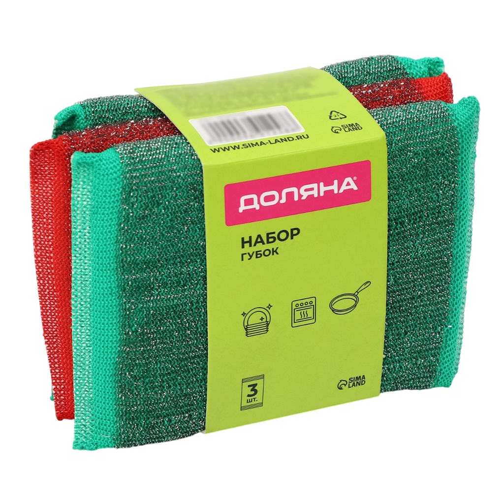 Набор губок скраберов для мытья посуды со стальной стружкой Доляна, усиленые, 3 шт, 13×9×1,5 см
