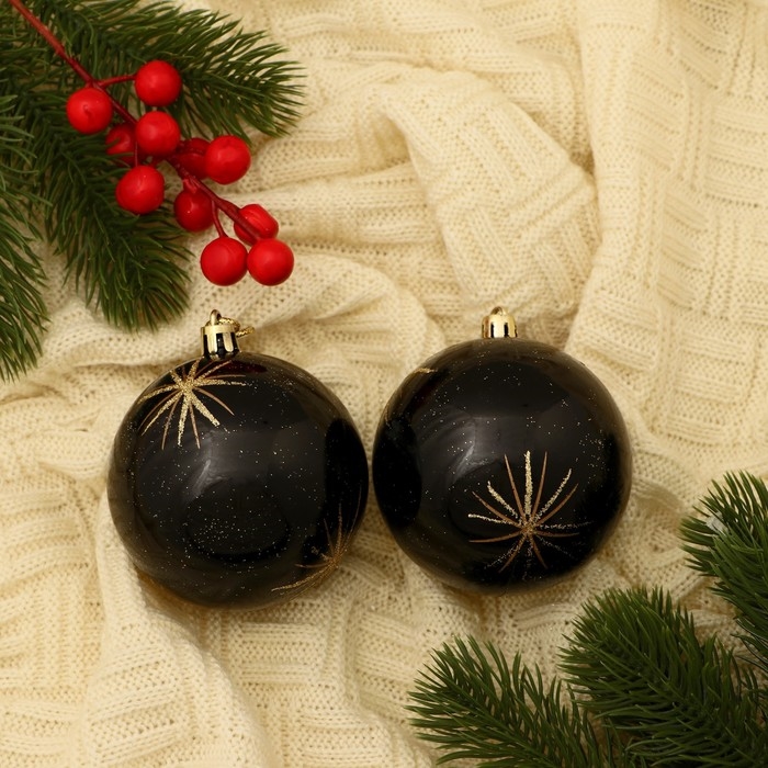Набор шаров пластик d-8 см, 2 шт ˮЯркая звездаˮ чёрный