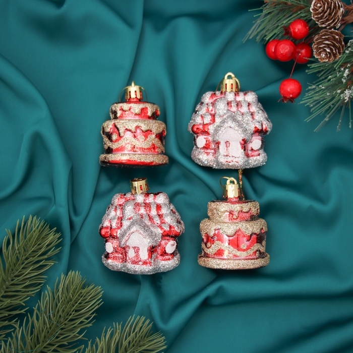 Набор украшений пластик 4 шт ˮКарнавальныйˮ (2 тортика, 2 подарка) 7х5 см, красный
