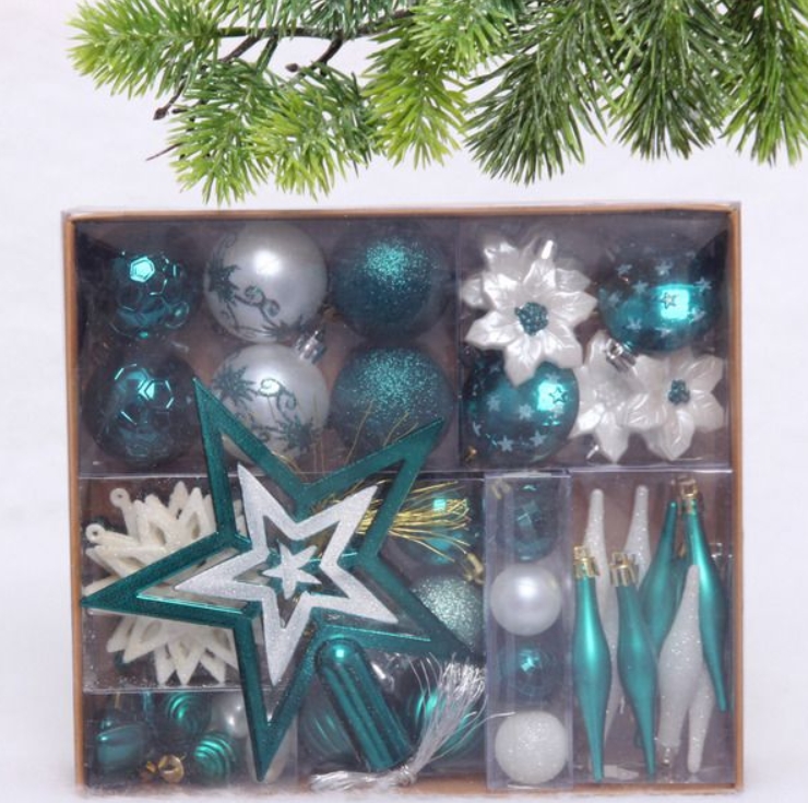 Набор ёлочных украшений ˮСказочная зимаˮ 45 предметов, Белый/Нефрит