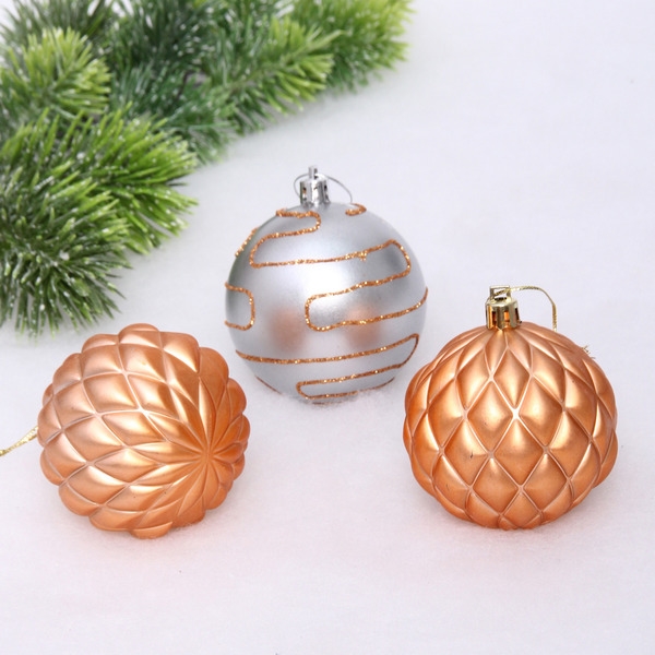 Новогодние шары 7см (набор 3шт) ˮСказочная мечтаˮ, серебро/шампань