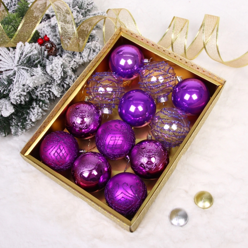 Новогодние шары ˮВолшебство ночиˮ 8 см (набор 12 шт), Фиолетовый