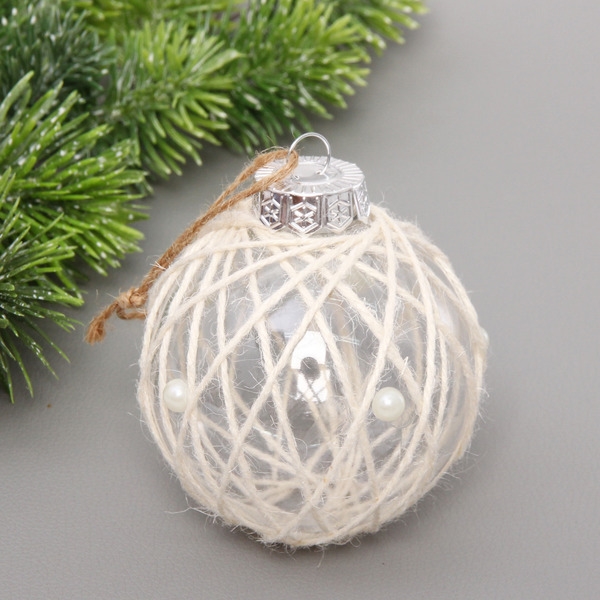 Новогодний шар ˮМорозное очарованиеˮ 8 см, Перламутр/Бежевый