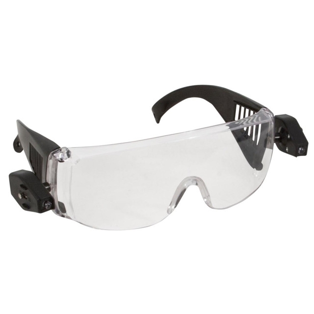 Универсальные защитные очки. С монолитной прозрачной линзой. Предназначены для защиты глаз от пыли, окалины, краски, стружки. Линзы изготовлены из 2 мм поликарбоната. Не дают искажений, не имеют ограничений по длительности ношения. Боковые фонари позволяют проводить ремонтные работы в условиях полной темноты. Упакованы в п/эт пакет.