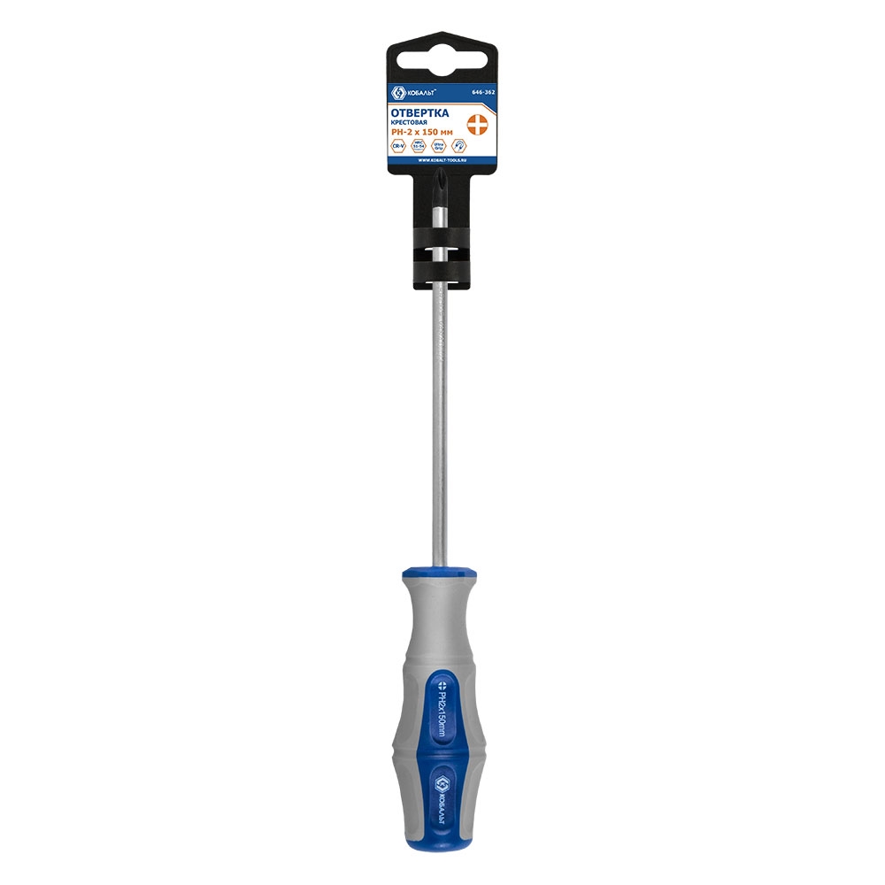 Отвертка Ultra Grip КОБАЛЬТ PH-2 х 150 мм, CR-V, двухкомпонентная рукоятка, подвес (646-362)