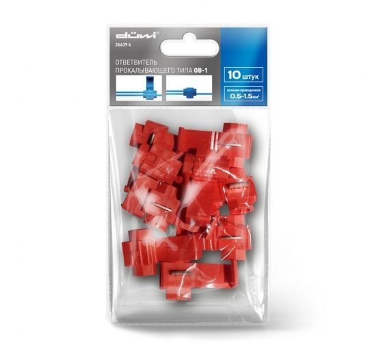 Ответвитель Duwi ОВ-1 0,5-1,5мм2, красный, 10шт 26639 6