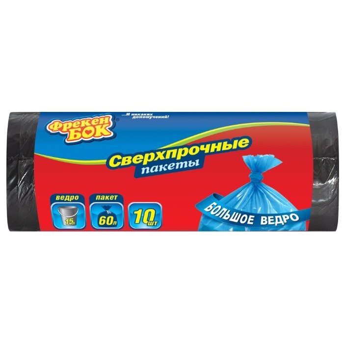 Пакеты для мусора ˮФрекен Бокˮ имеют высокую толщину и плотность материала, что позволяет применять их для выноса большого количества мусора при проведении строительных и ремонтных работ, сезонных уборок уличных территорий. Предназначены для большого или нестандартного мусорного ведра. Пакеты в рулоне, отрываются строго по линии отрыва.