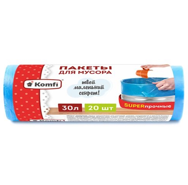 Пакеты для мусора ПСД суперпрочные голубые 30л 20шт Komfi/30