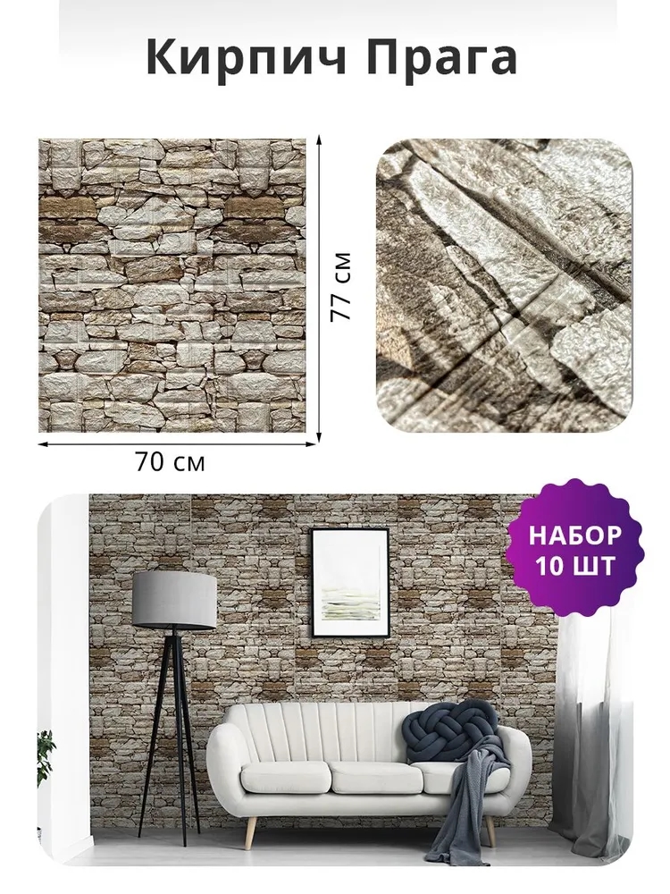 Панель самоклеящаяся 3D 700х770х3мм Альбион С-27 10шт/упак, 5,39 кв м