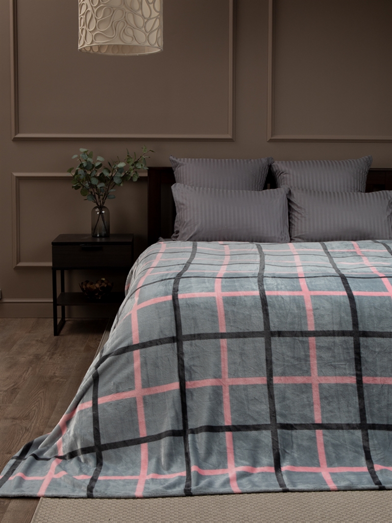 Плед Texrepublic, Absolute, фланель печать, 150*200см, TF FN F122 a1520 Клетка серо-розовая, 26224
