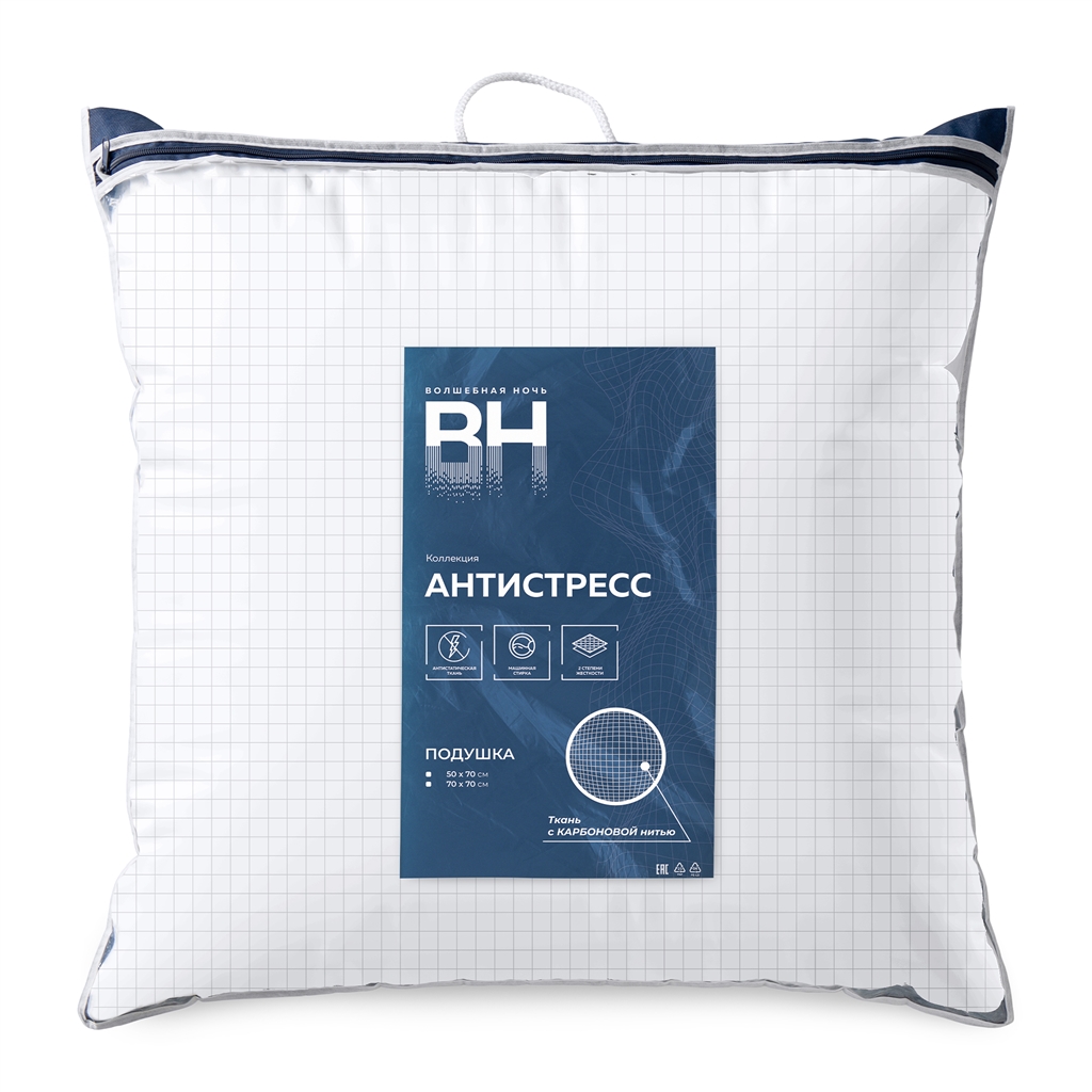 Подушка «Волшебная Ночь» Антистресс размером 70x70 см. В чехол вплетена специальная карбоновая (угольная) нить. Такая нить, благодаря свойствам активированного угля, способствует нейтрализации неприятных запахов, регуляции влажности и созданию гипоаллергенной среды для спокойного и комфортного сна. Мягкий наполнитель и стандартная квадратная форма делают эту подушку универсальной, она помогает снять напряжение в конце дня.