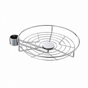 Используется в качестве навесного декоративного элемента на вертикально установленную полую трубу диаметром 50мм. На такой подставке можно хранить фрукты, хозяйственные мелочи, посуду и многое другое. Подставка выполнена из стальной проволоки с гальваническим покрытием.