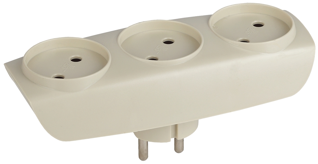 Тройник без заземления с корпусом из негорючего пластика предназначен для бытового использования в сетях с напряжением 220 В. Устанавливается при необходимости подключения нескольких бытовых приборов одновременно в одну розетку. Корпус тройника устойчив к механическим повреждениям. При изготовлении производитель учел требования пожаробезопасности. 3 гнезда.