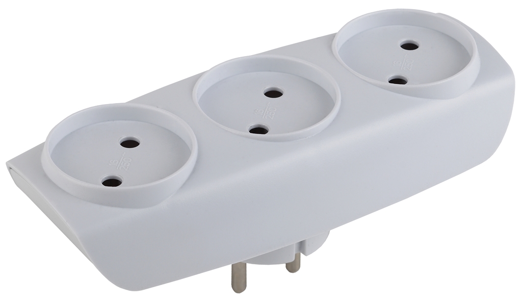 Тройник без заземления с корпусом из негорючего пластика предназначен для бытового использования в сетях с напряжением 220 В. Устанавливается при необходимости подключения нескольких бытовых приборов одновременно в одну розетку. Корпус тройника устойчив к механическим повреждениям. При изготовлении производитель учел требования пожаробезопасности. 3 гнезда.