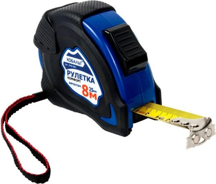 Рулетка КОБАЛЬТ Экстра 8м x 25мм, металлический корпус, толщина ленты 0,13 мм, автостоп, магнит
